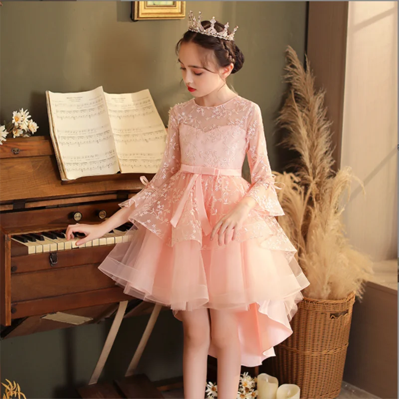 Autumn New Style Long-Sleeved Children's Princess Dress Wedding Flower Girl Piano Performance Trailing Wedding Dress Girl Dress
